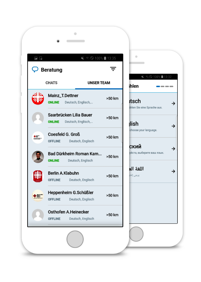 - Eine Beraterin oder einen Berater nach dem Ort oder nach der Sprache auswählen